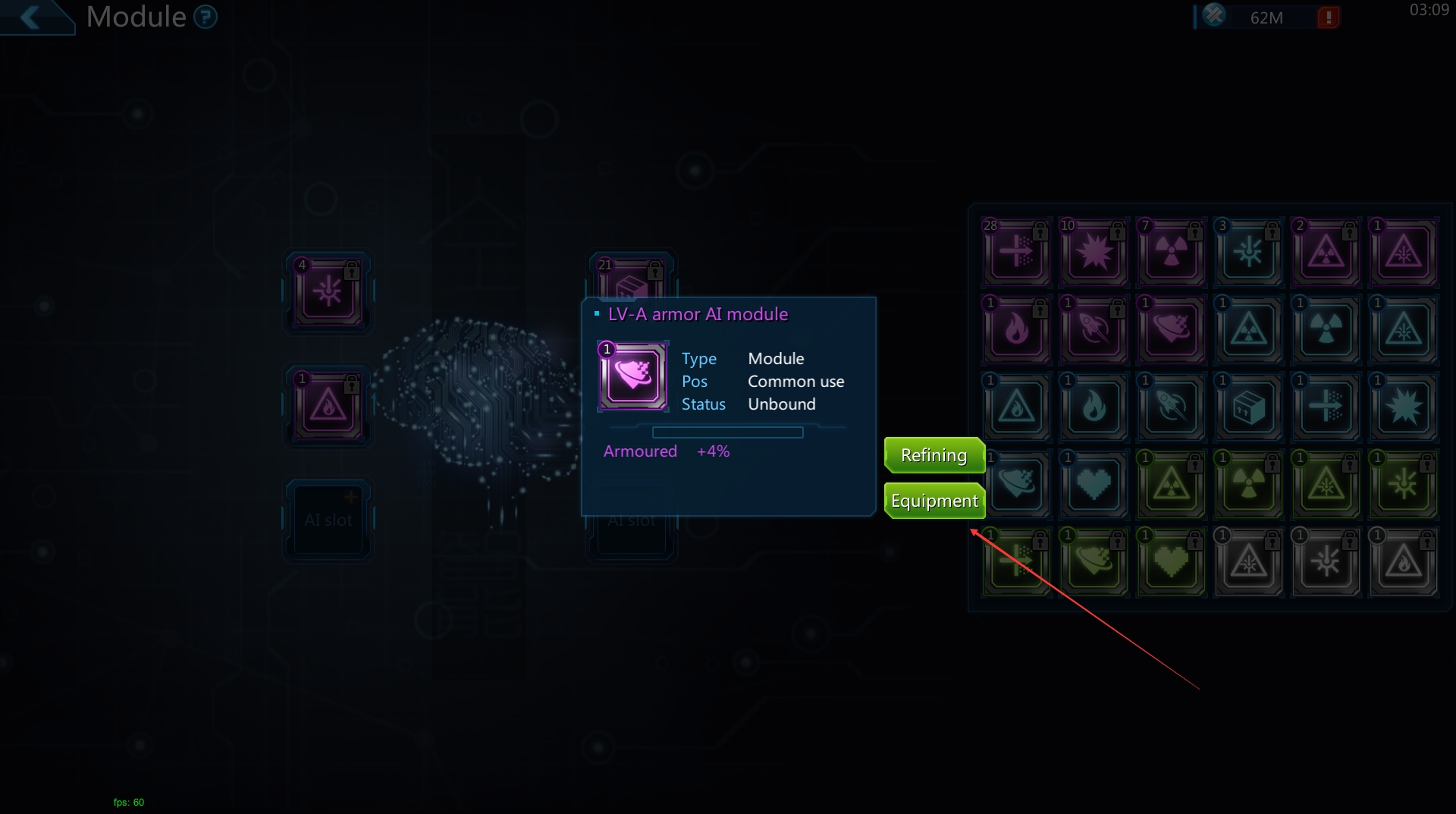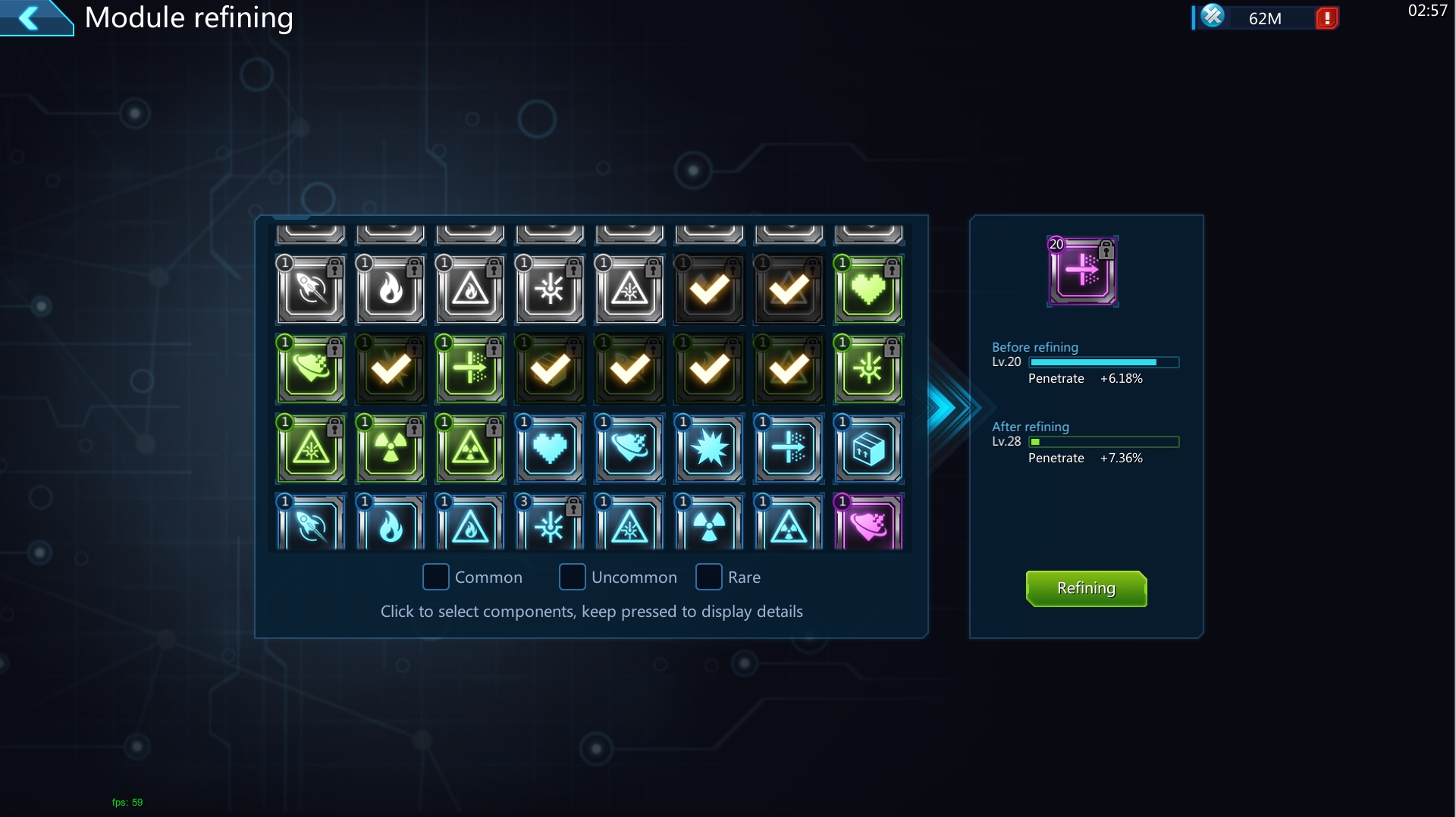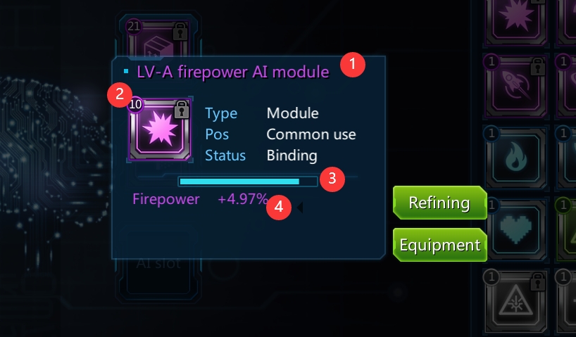 The level of modules can be improved through "Refining". The highest refinement level of a module cannot exceed the level of the captain.