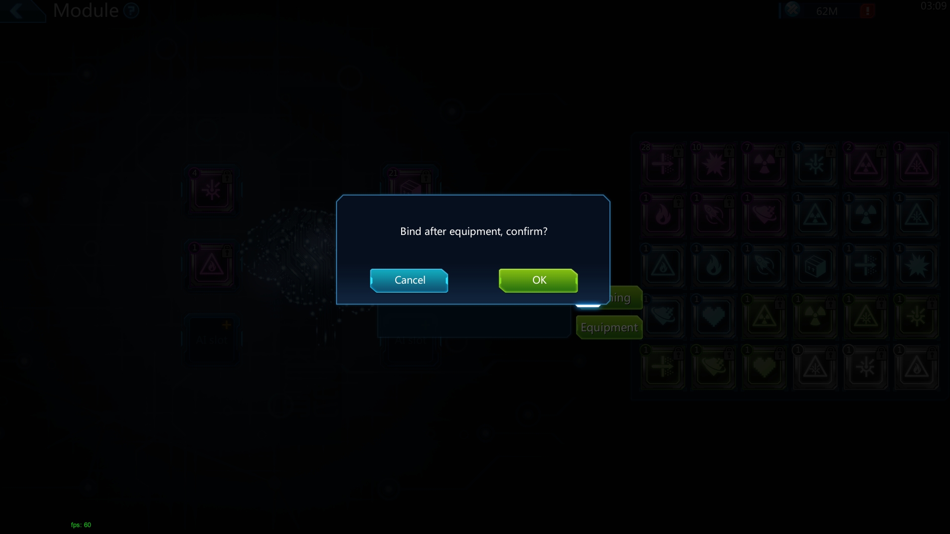 Unlocked modules will be automatically locked after equipping.