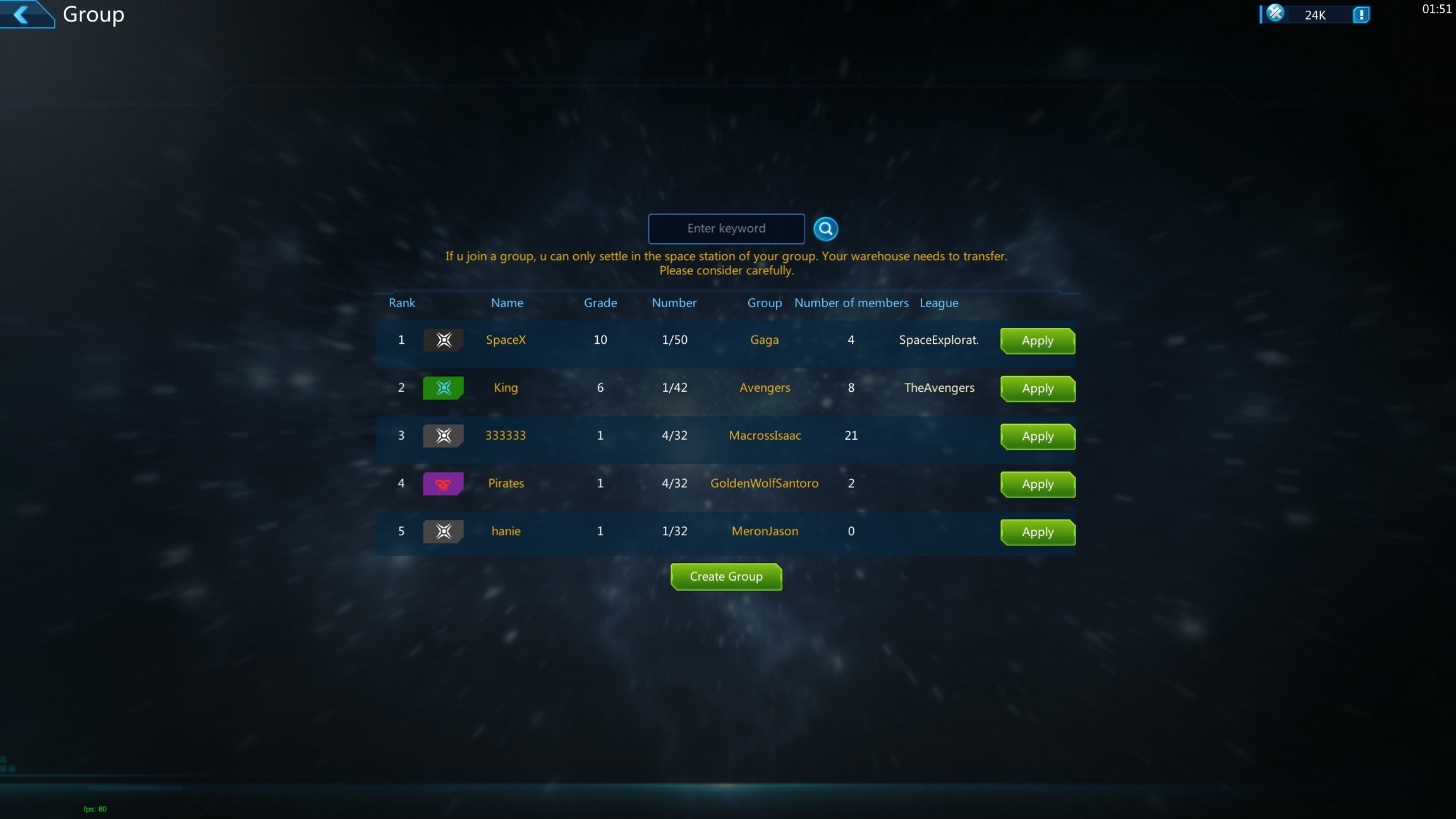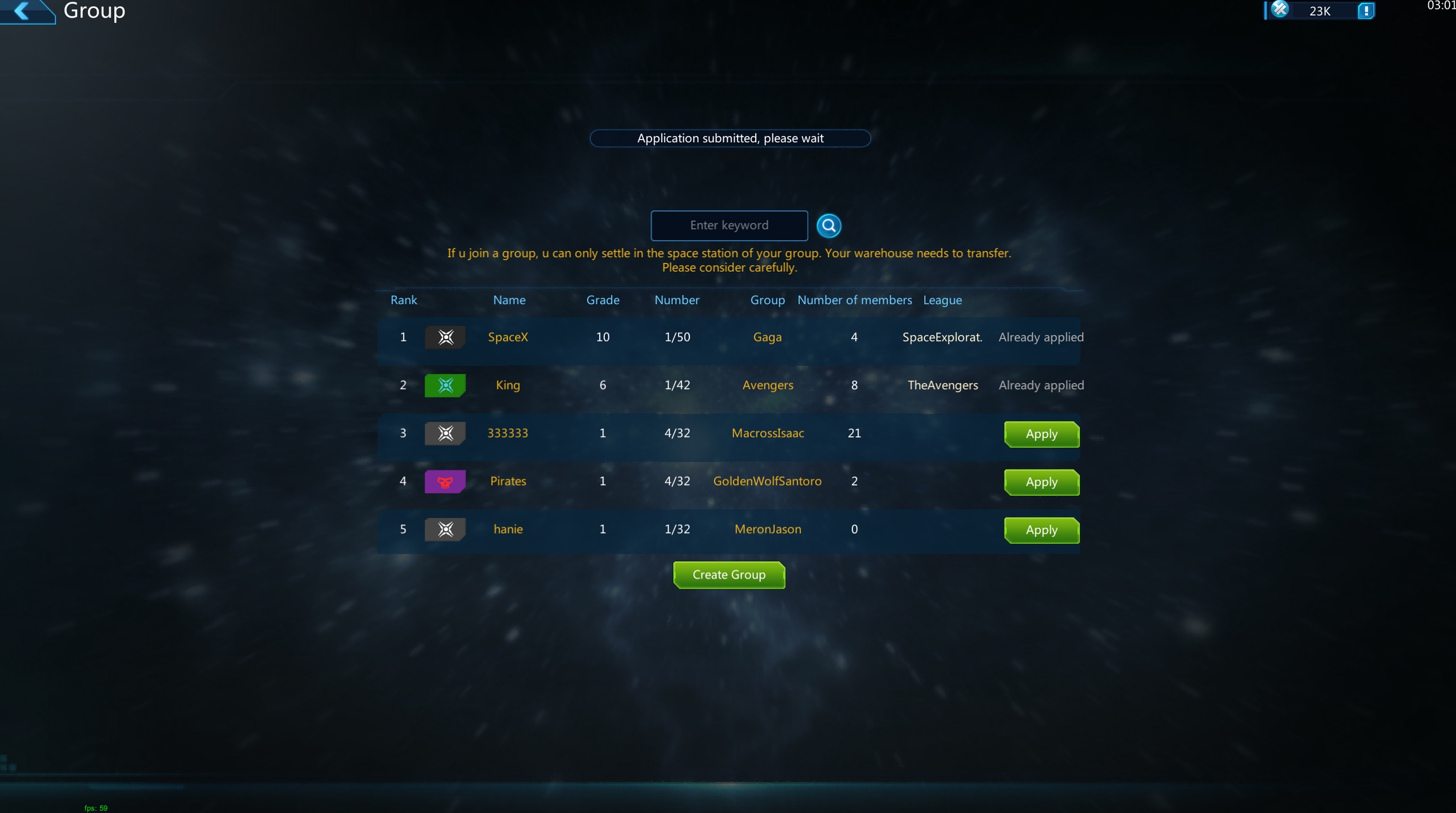 If the group leader approves, you will successfully join the group. If declined, you can reapply to another group. Players can apply to multiple groups simultaneously.