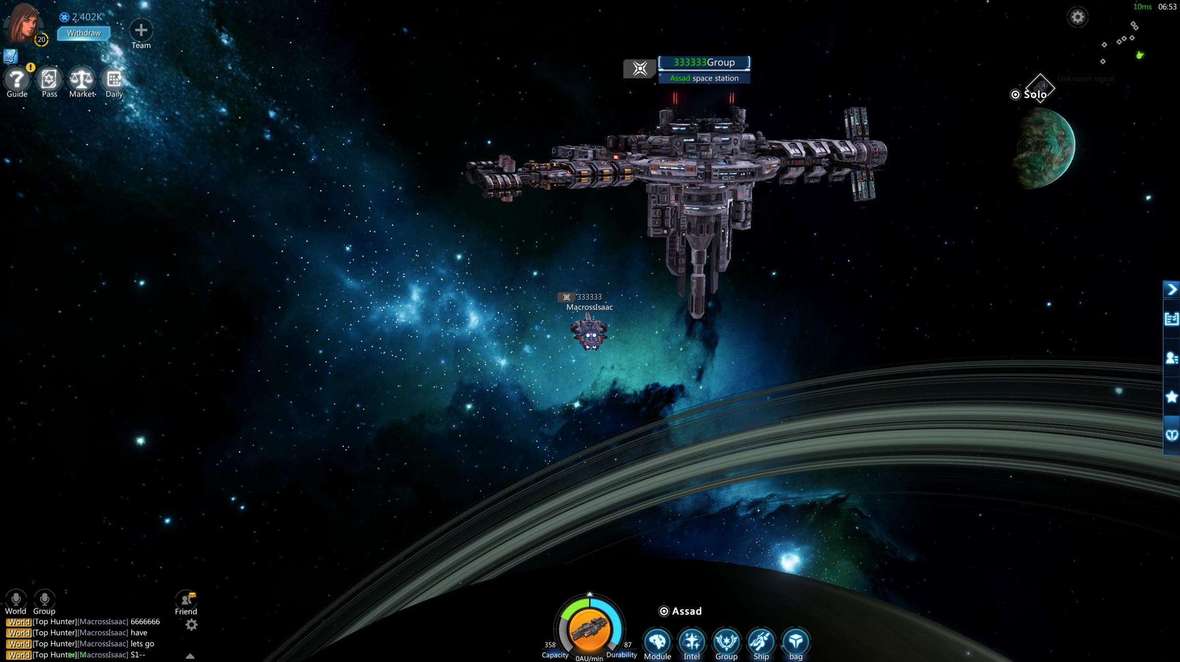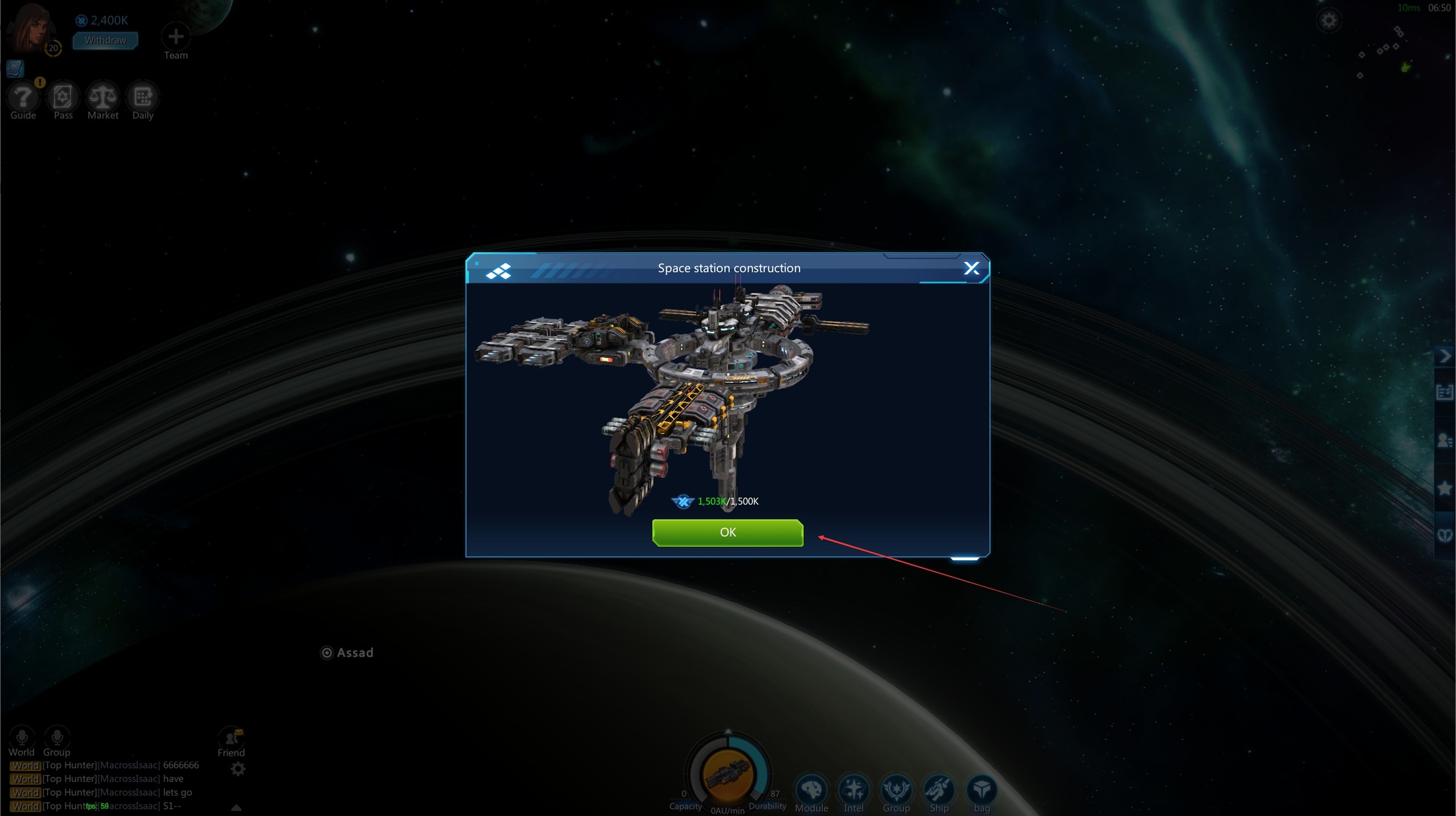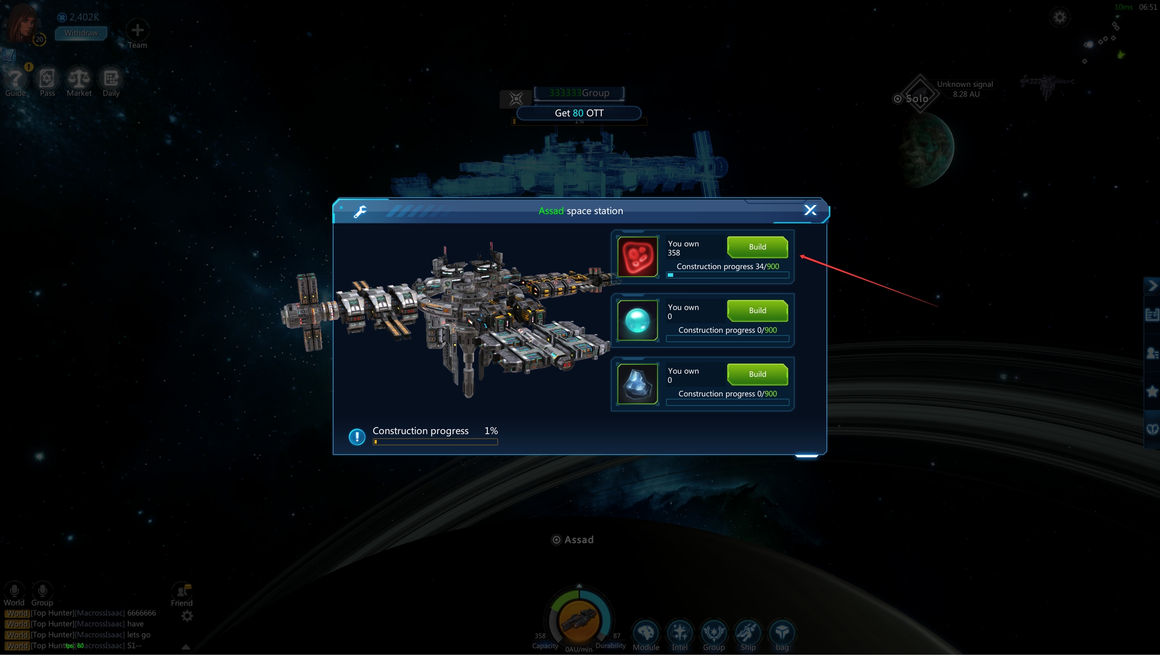 Navigate to the planet and start building the space station